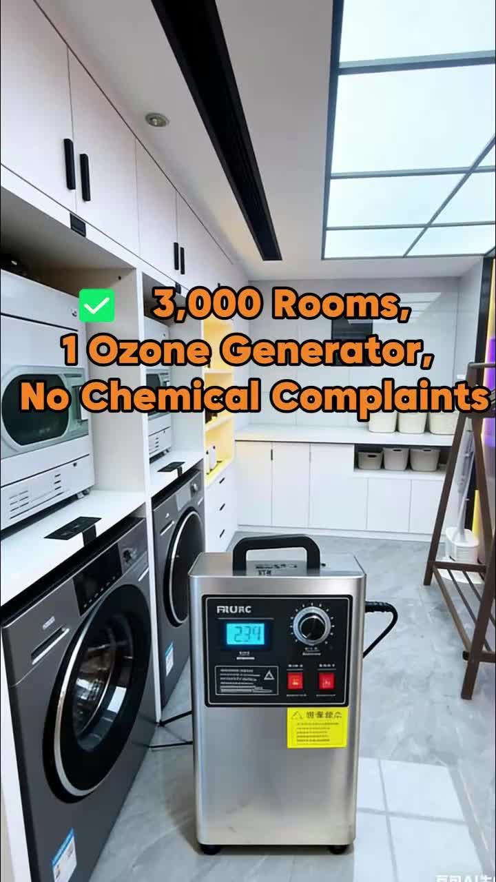 3.000 salas, 1 gerador de ozônio – sem reclamações químicas.